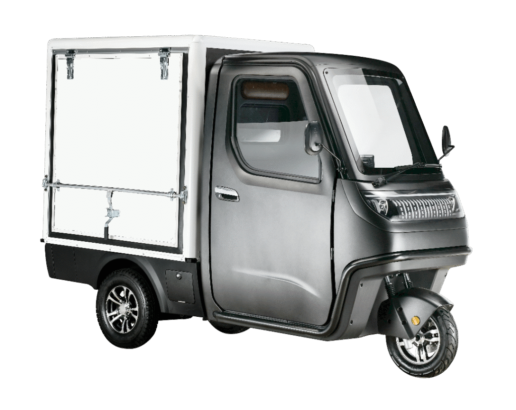 E-FORCE VAN er kompakte og elektrisk van-kabinescootere, der kombinerer praktik og fleksibilitet. Med de fire forskellige udstyrsmodeller – Pick-Up, Cargo, Café og Café Cool – er der uendelige muligheder, uanset om behovet er privat eller erhverv.